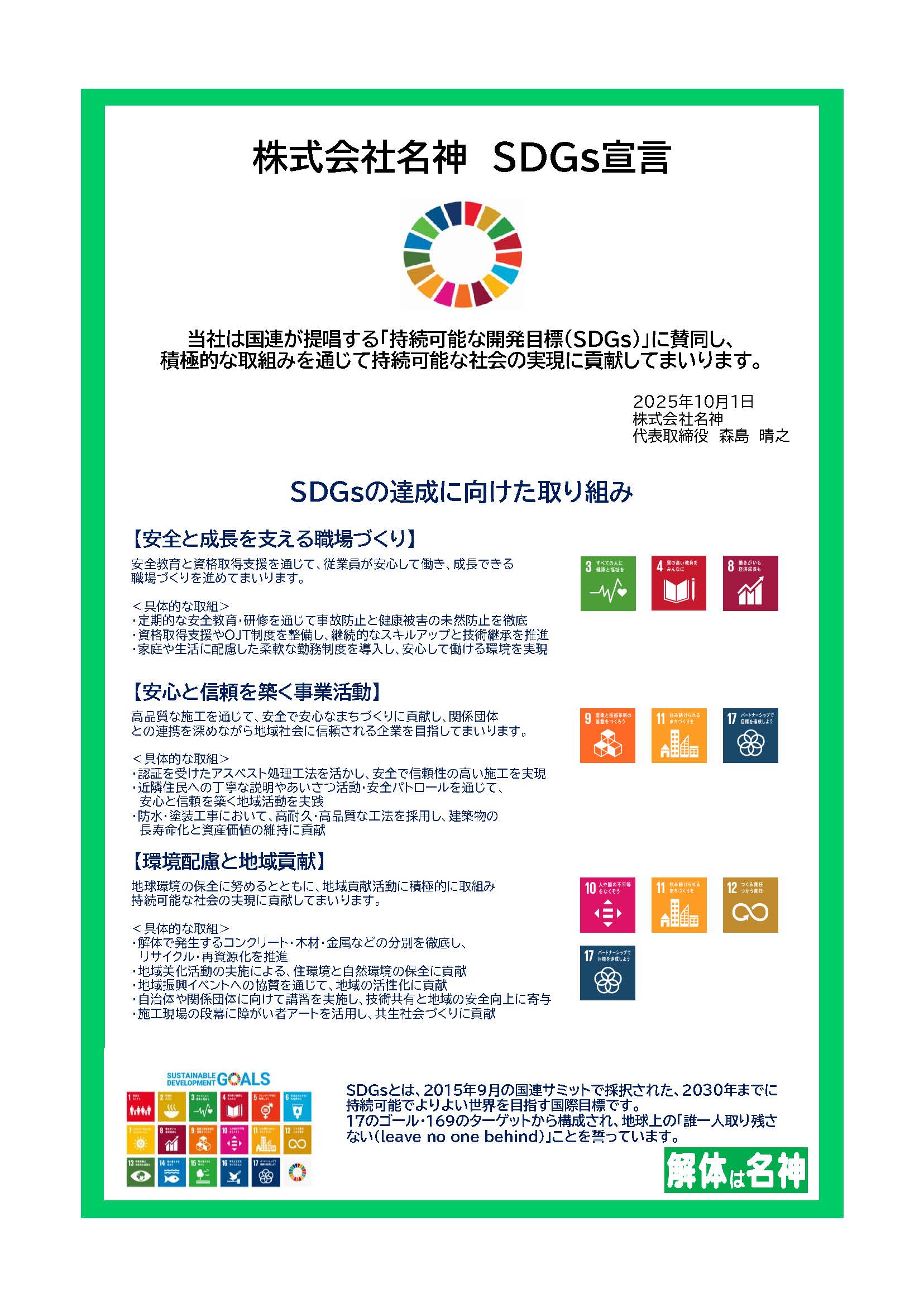 株式会社名神は、法令を遵守した適切で安全な解体工事を「当たり前」に提供することで、